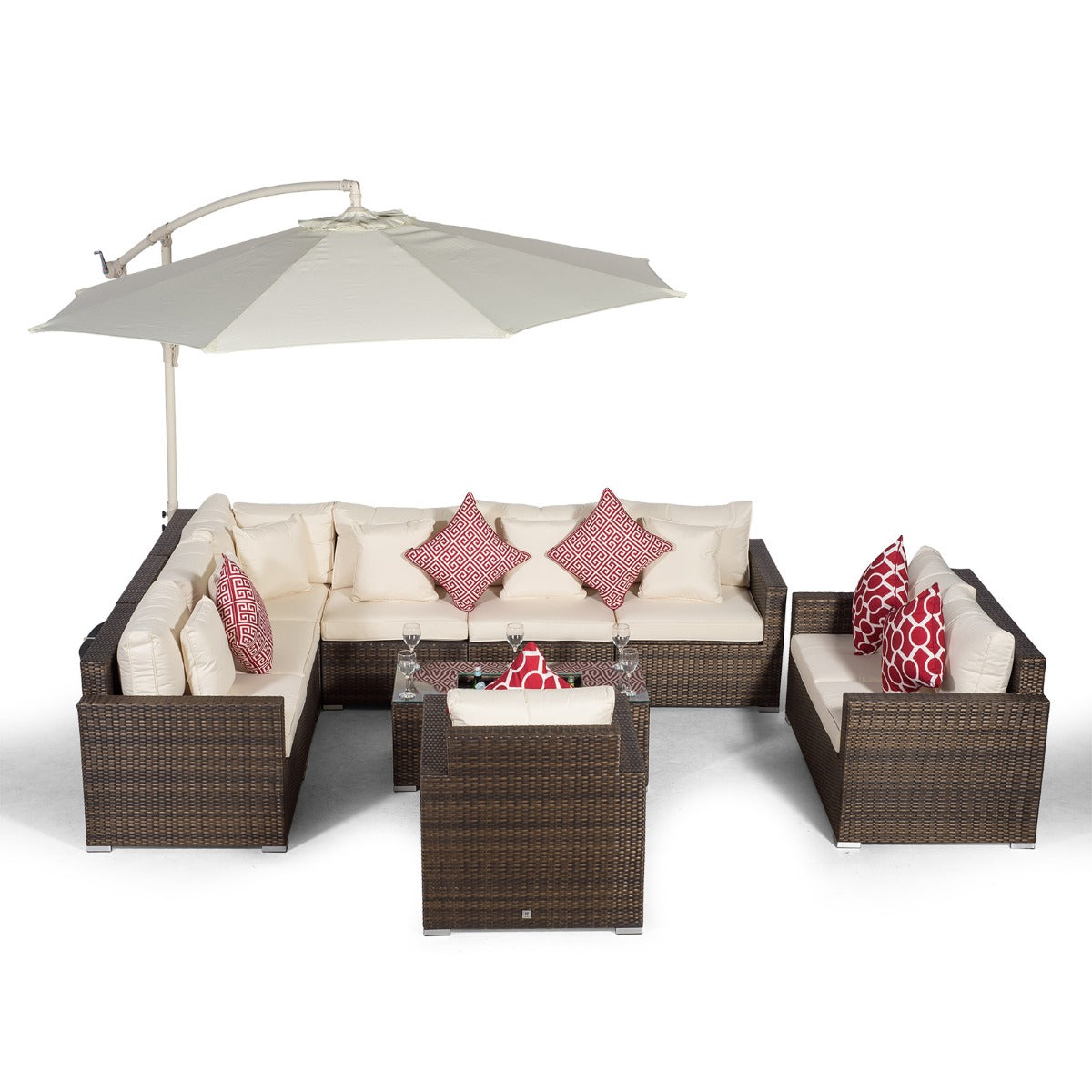 HAVANA 9 SEAT RATTAN CONVERSATION SET WITH 2 SEATER SOFA, ARMCHAIR & DRINKS COOLER COFFEE TABLE - BROWN