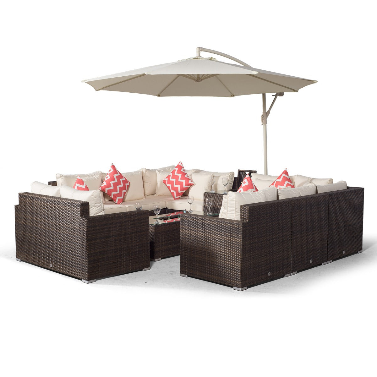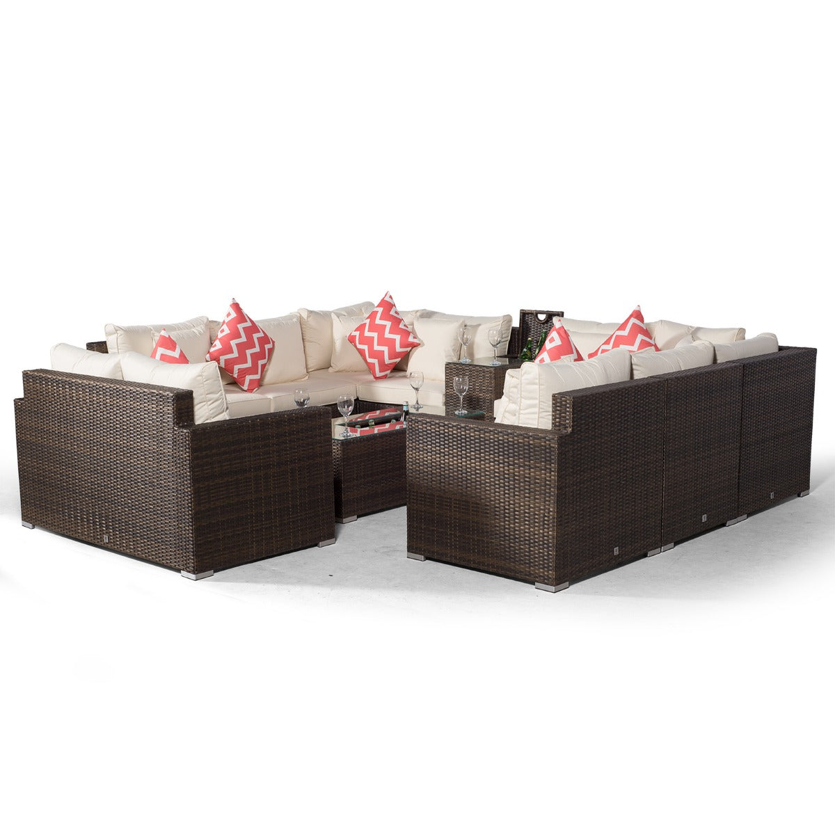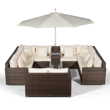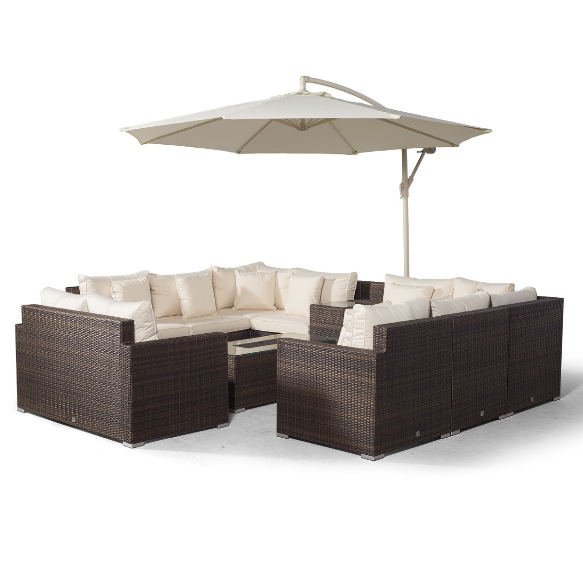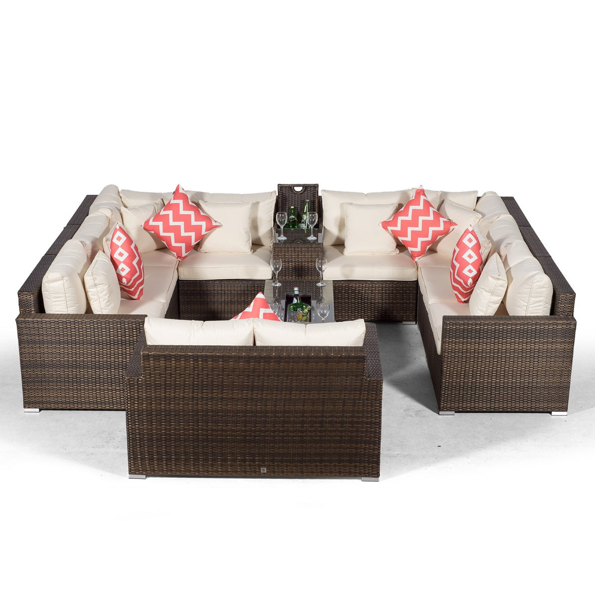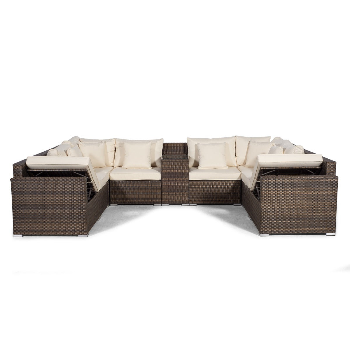 Havana Modular 10 Seat Rattan Conversation Set With 2 Seater Sofa, Armrest Drinks Cooler & Ice Cooler Coffee Table - Brown