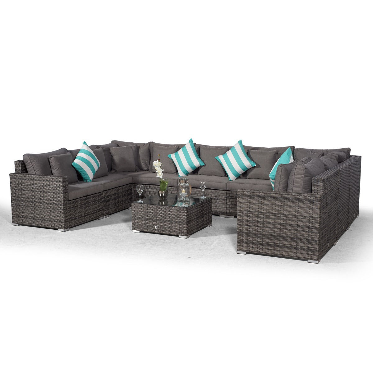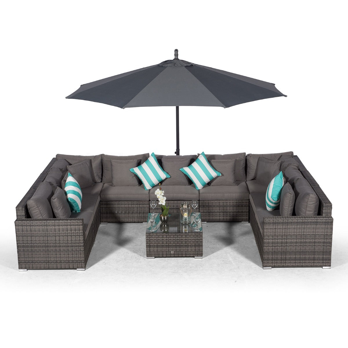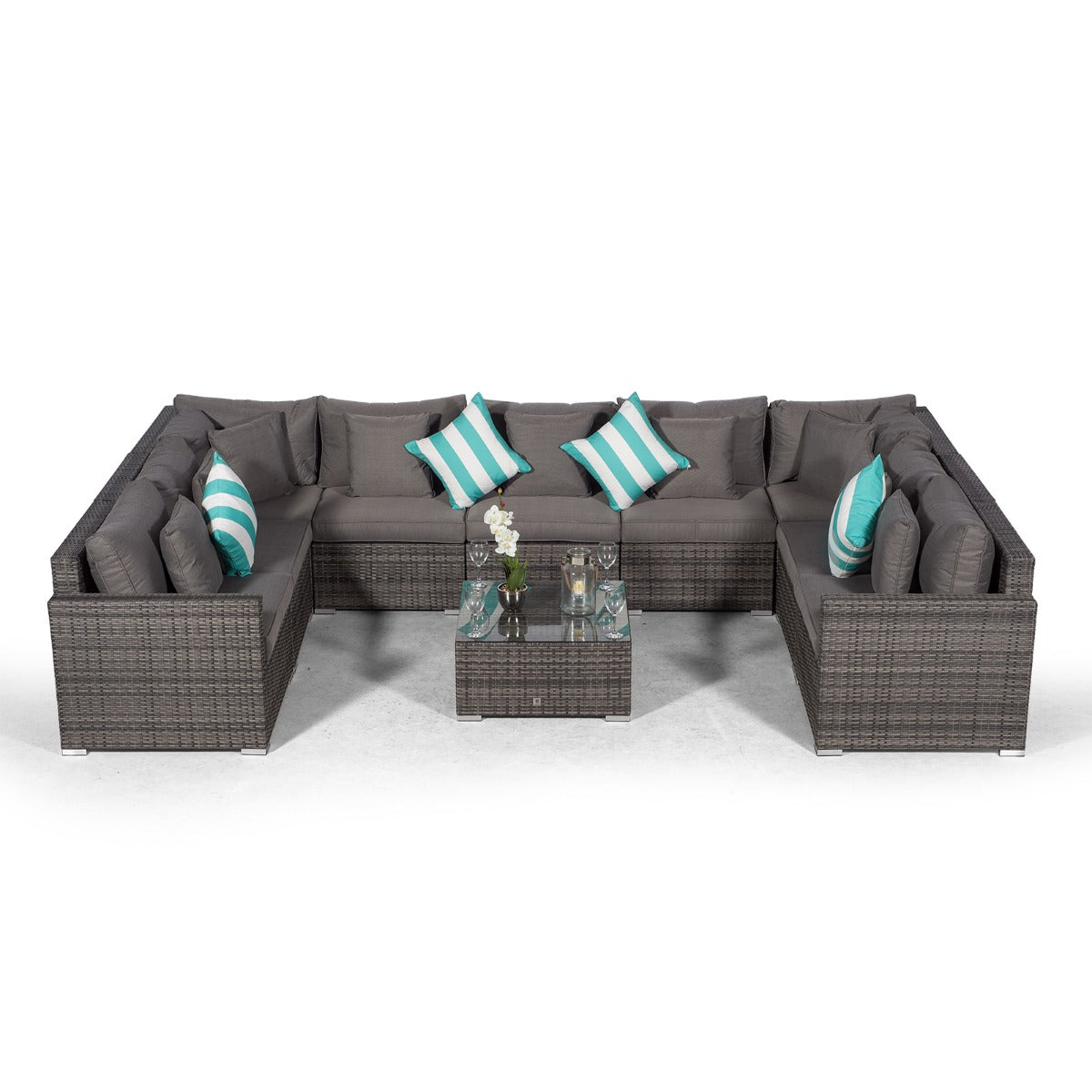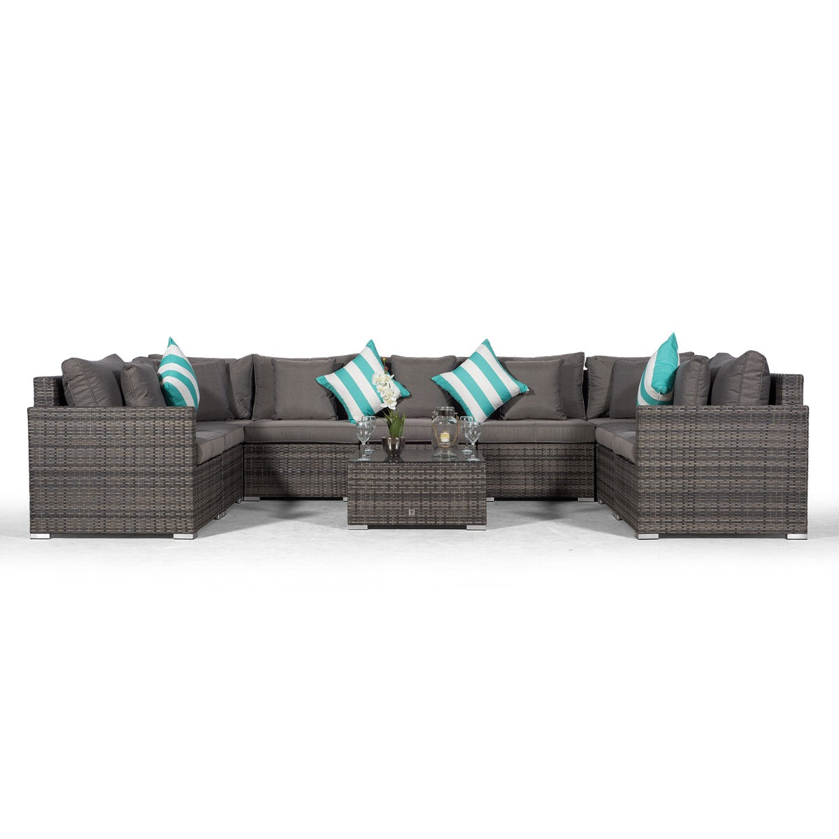 Havana U Shape Modular 9 Seat Rattan Sofa Set With Coffee Table - Grey
