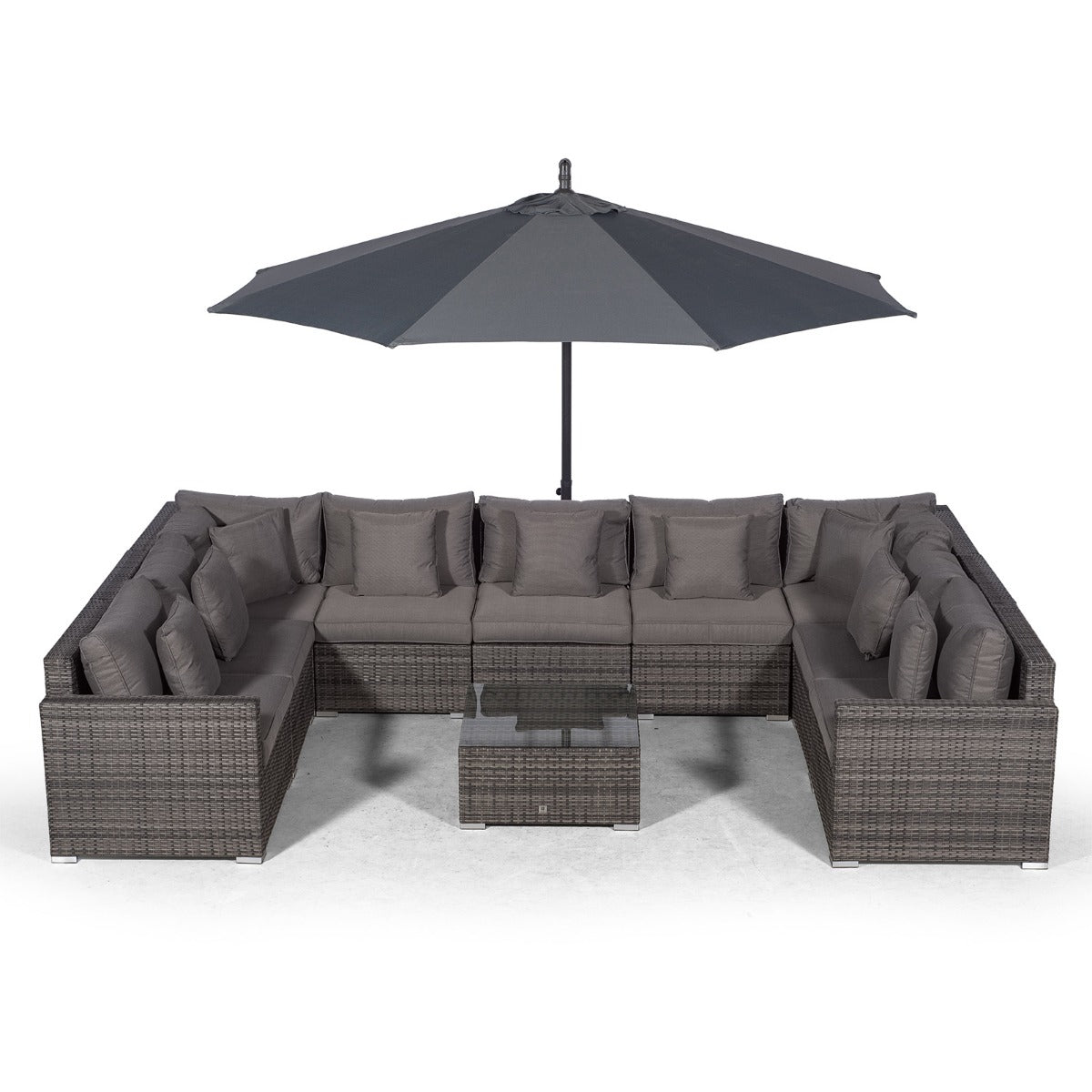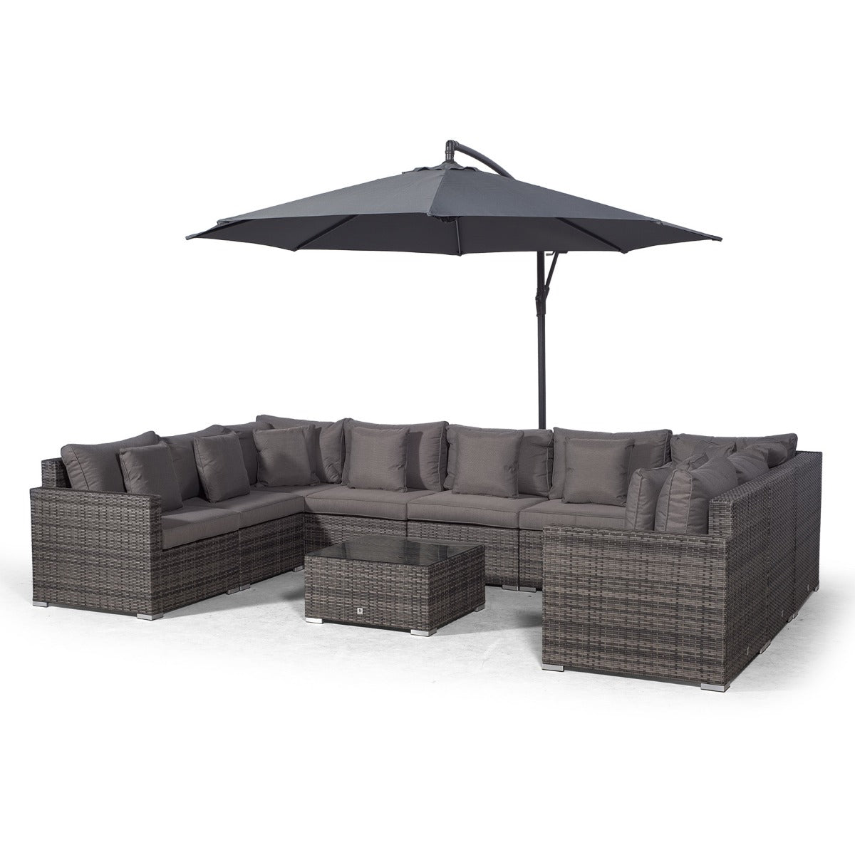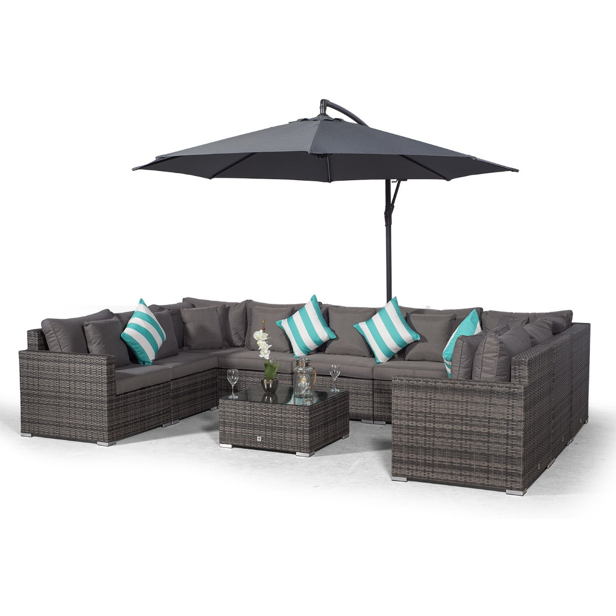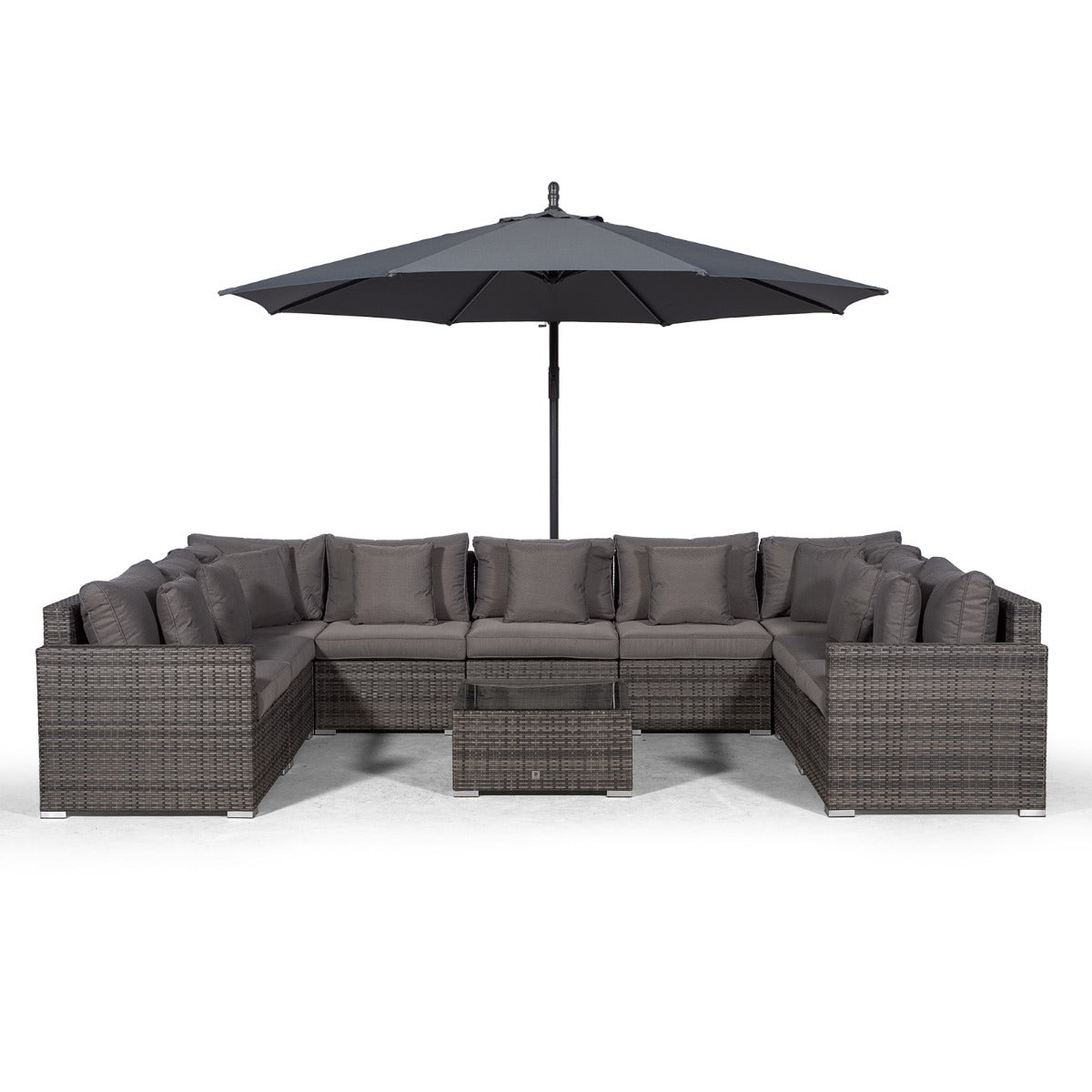 Havana U Shape Modular 9 Seat Rattan Sofa Set With Coffee Table - Grey