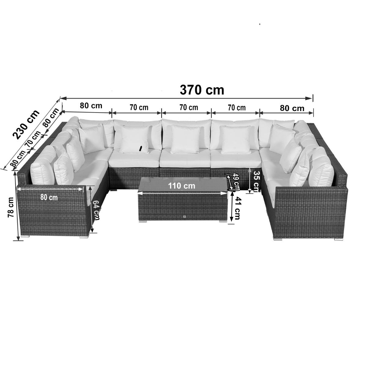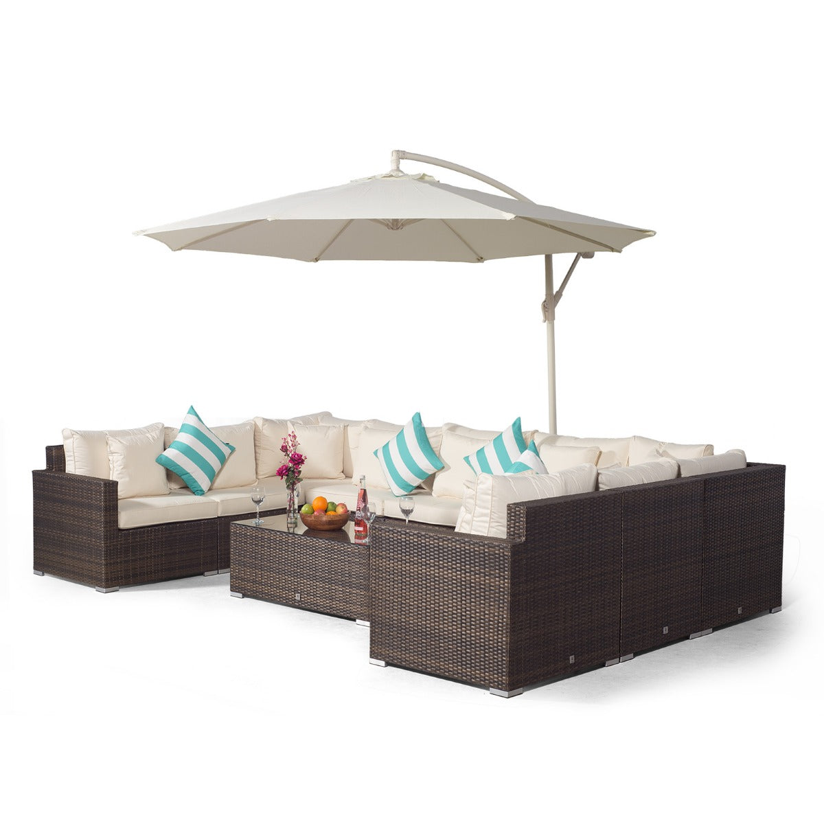 HAVANA 9 SEAT RATTAN SOFA SET WITH LARGE COFFEE TABLE - BROWN