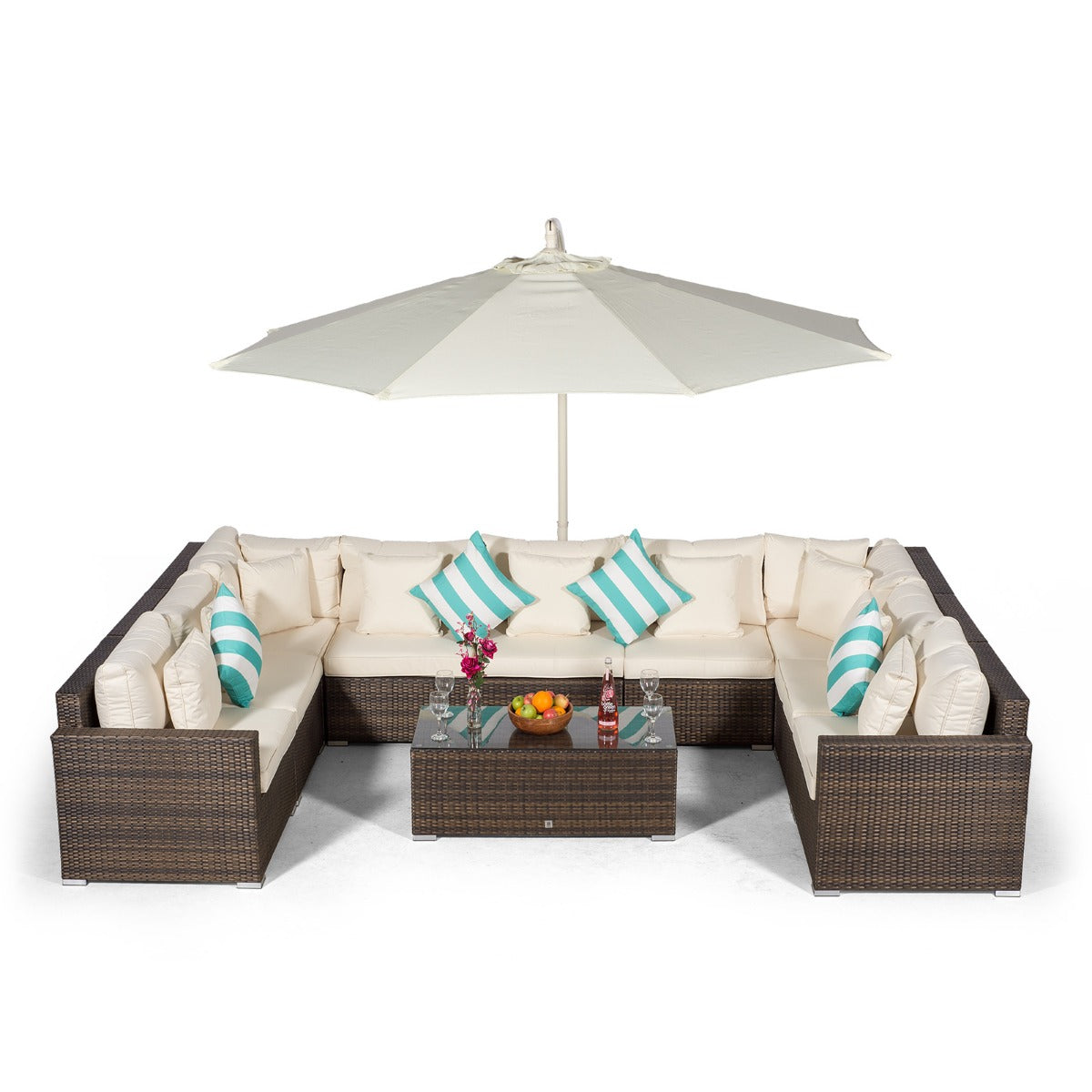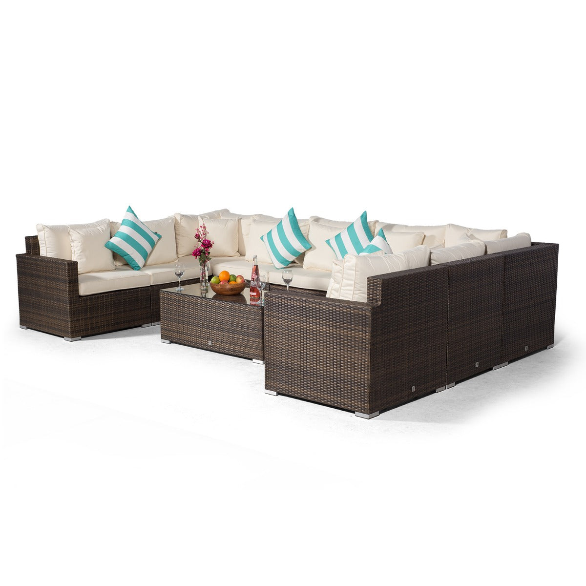 Havana U Shape Modular 9 Seat Rattan Sofa Set With Large Coffee Table - Brown