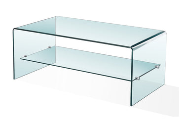 Luna Glass Coffee Table with Shelf | Clear Glass