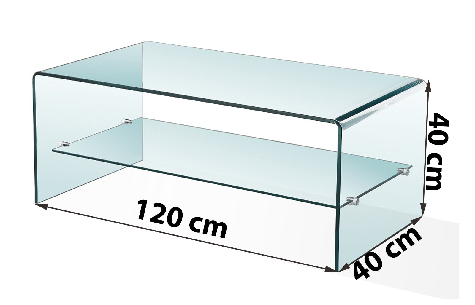 Proudly made by skilled craftsmen from a single sheet of 12mm thick toughened and tempered glass, the glass is skilfully curved to form the beautiful minimalist design. The shelf is made of a separate piece of 10mm thick tempered glass and sits on 4 contemporary stainless steel discs bonded to the main clear glass coffee table structure. The Luna clear coffee table features 4 discreet stainless pads on each corner of the base as a protective barrier between the glass and floor.
