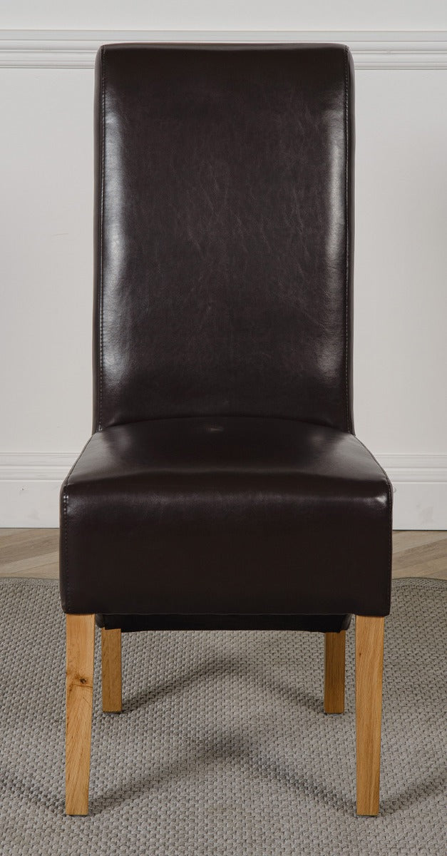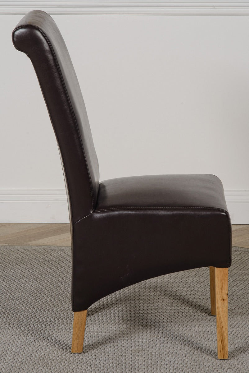 Montana Brown Leather Dining Chair | Scroll Top