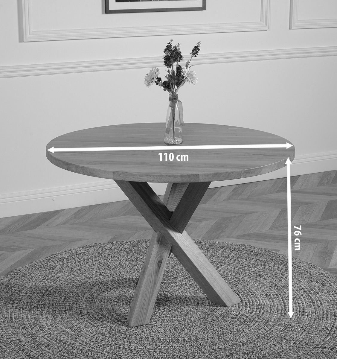 The Oregon round wooden table is made from full lengths of oak timber which go through a lengthy process of seasoning and kiln drying until they're ready to be crafted. The dining table wood is finished in a clear lacquer to maintain the natural wood tone and provide long lasting protection.