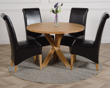 Oregon Round Oak Dining Table with 4 Montana Black Leather Chairs