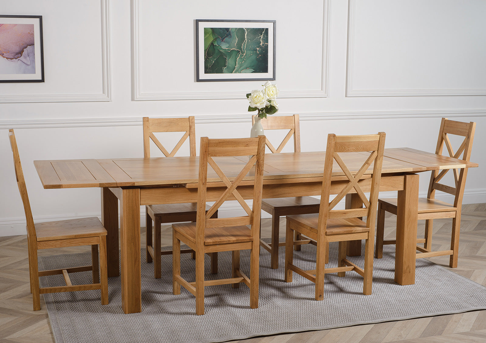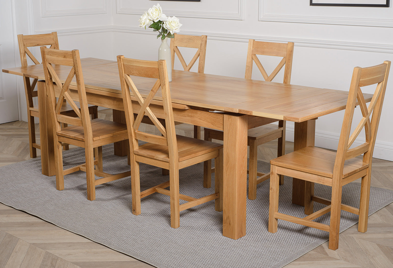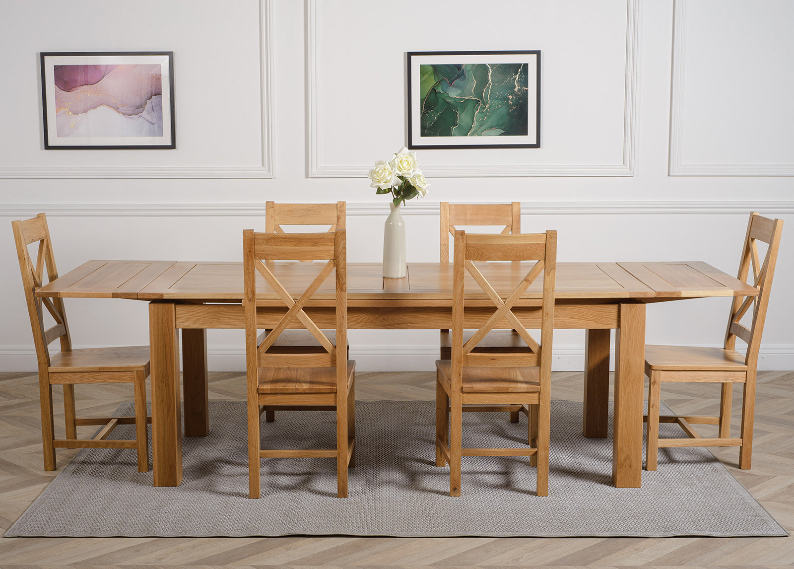 Richmond Large Oak Extending Dining Table with 6 Berkeley Oak Chairs