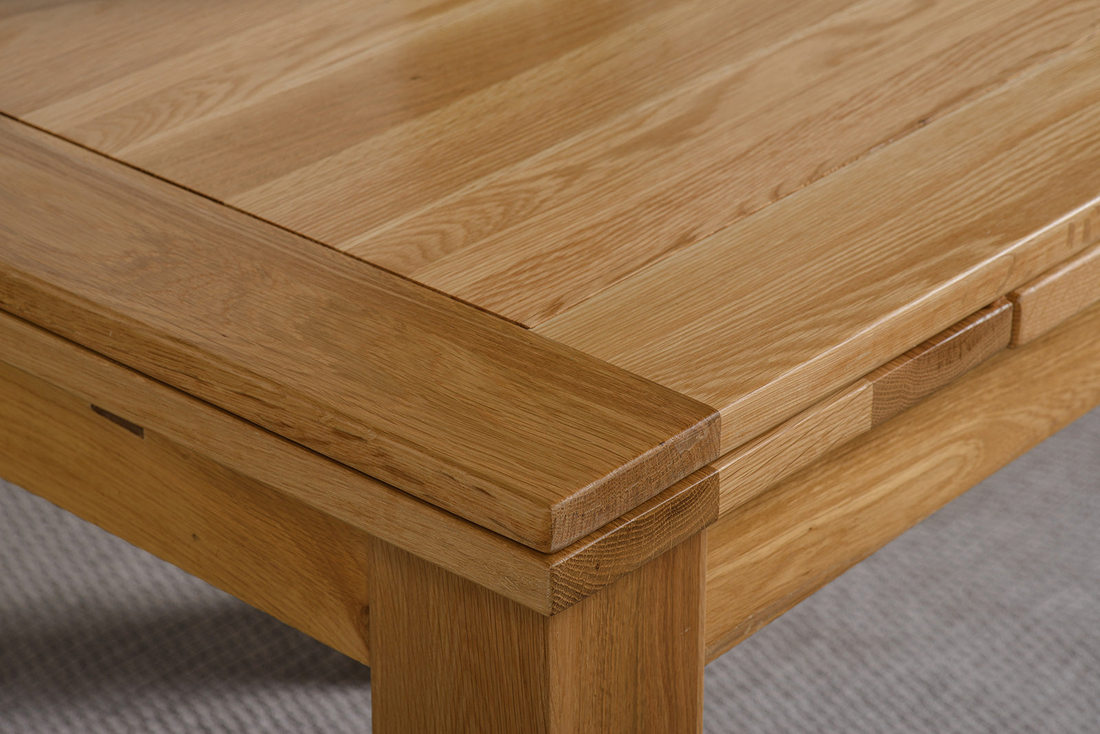 Quality craftsmanship - Our oak dining table sets are proudly handmade from sustainably sourced oak timber using time-honoured techniques. Inlaid grooves on the table top allow for natural expansion of the wood over time and prevent bowing, a sure sign of quality design. Each piece goes through a process of fine sanding and polishing for a smooth finish which is sealed in a clear lacquer protecting and enhancing the appearance of the wood grain on this oak extendable dining table and chairs set.