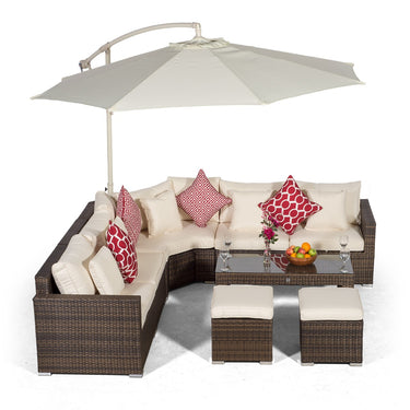 Your garden seating arrangement just wouldn't be complete without a large parasol to provide cooling shade on those extremely hot days. The Santorini 'L' shaped outdoor modular sofa set comes complete with a free-standing 3m parasol with wind-up 'crank' mechanism, fitting perfectly behind the sofa to create a cooling canopy. When not in use simply wind the crank handle to easily fold the parasol away.