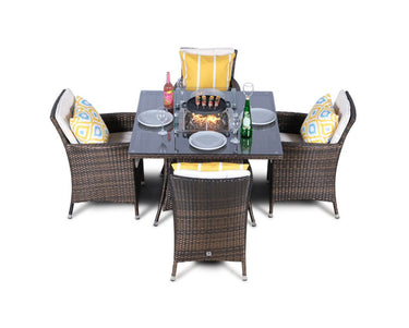 Savannah Fire Pit 4 Seater Square Rattan Dining Set - Brown