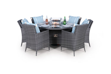Savannah Fire Pit 6 Seater Round Rattan Dining Set - Grey
