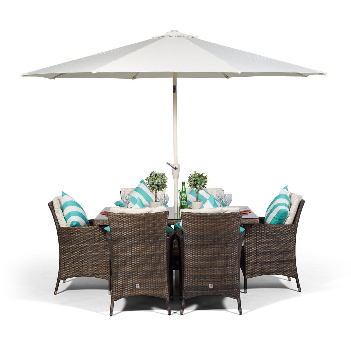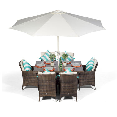 Savannah Rectangular 6 Seater Garden Patio Dining Set - Brown