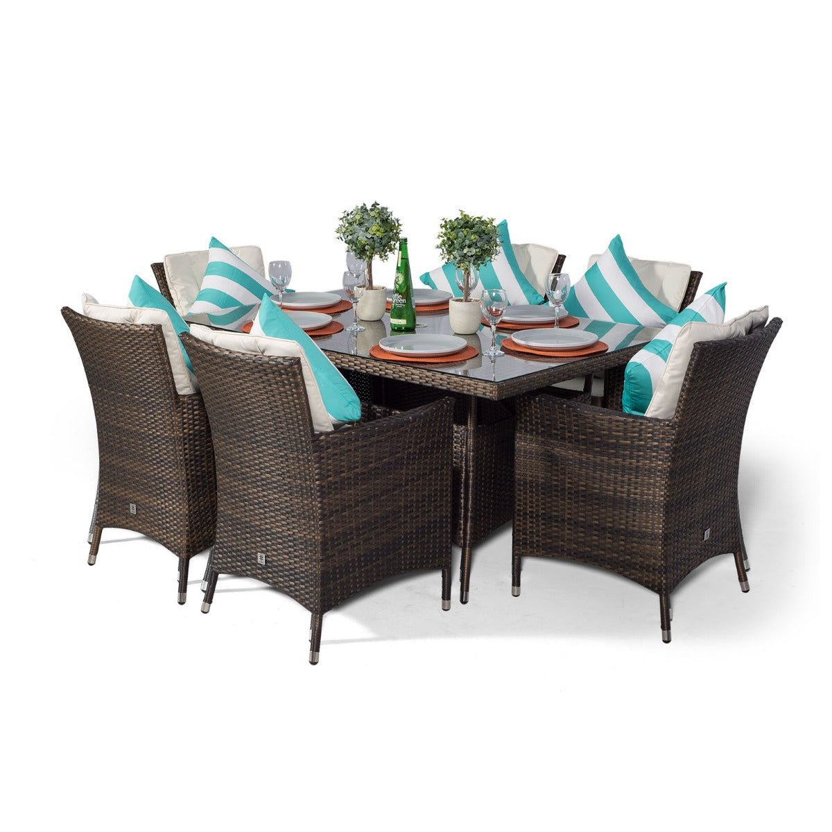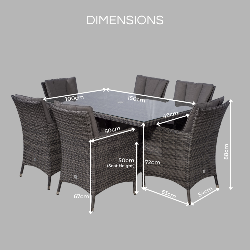 Enjoy warm summer days and evenings in style with the Savannah rectangle 6 seat rattan dining set by Giardino.