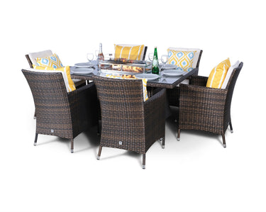 Savannah Fire Pit 6 Seater Rectangle Rattan Dining Set - Brown