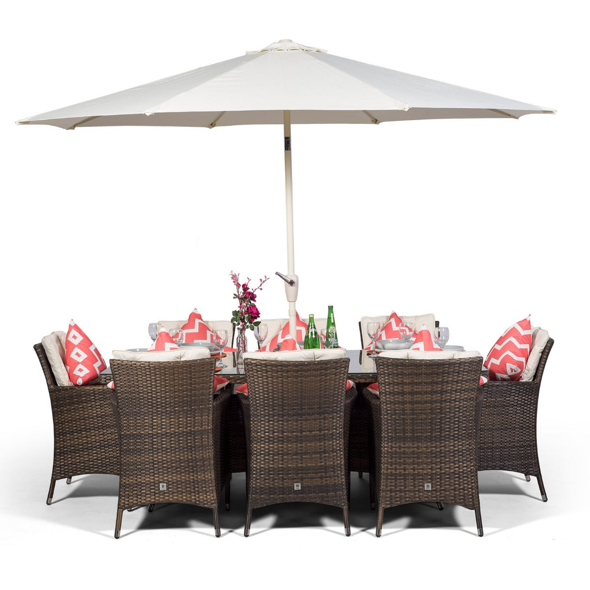 Savannah Rectangular 8 Seater Garden Patio Dining Set - Brown