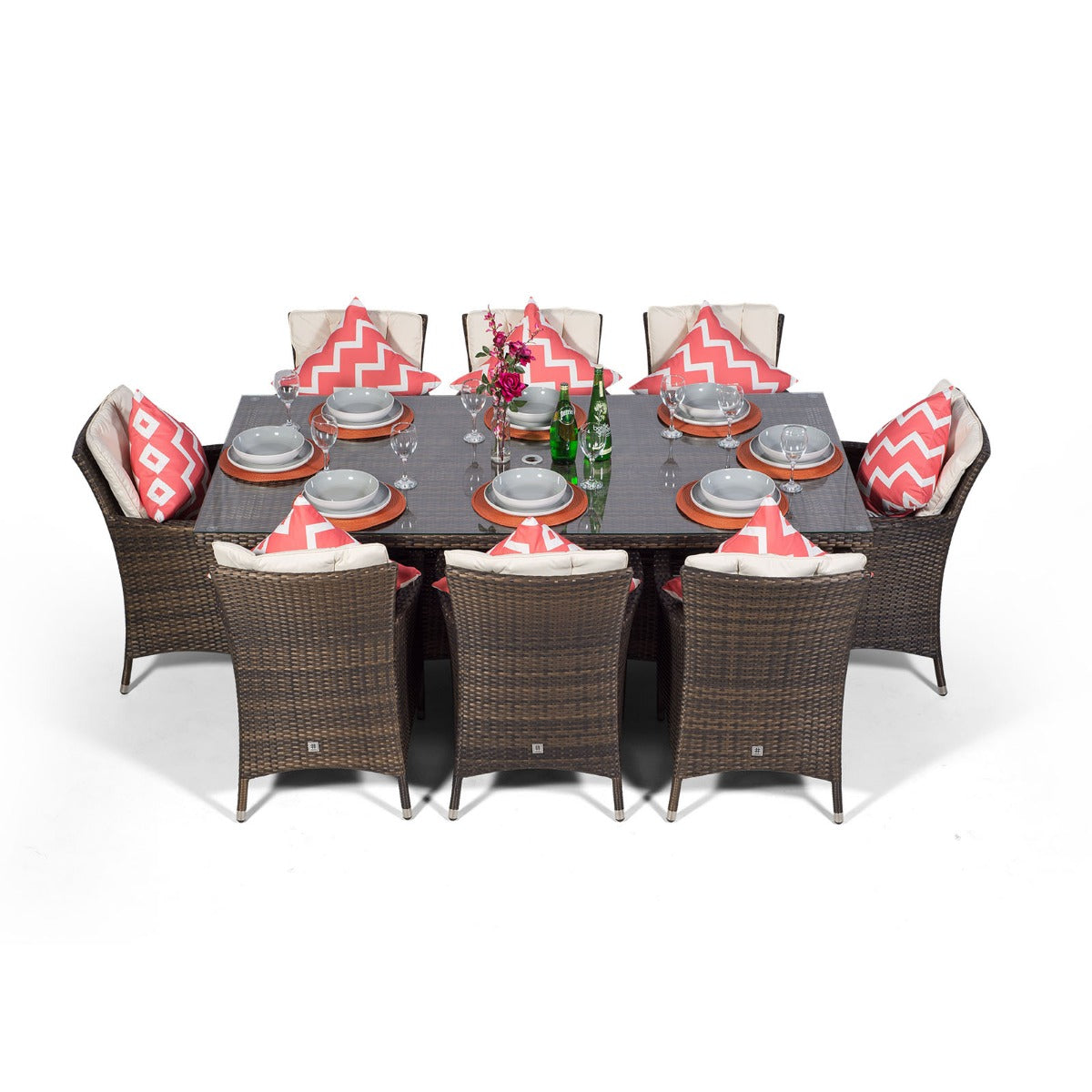 SAVANNAH RECTANGULAR 8 SEATER GARDEN PATIO DINING SET - BROWN