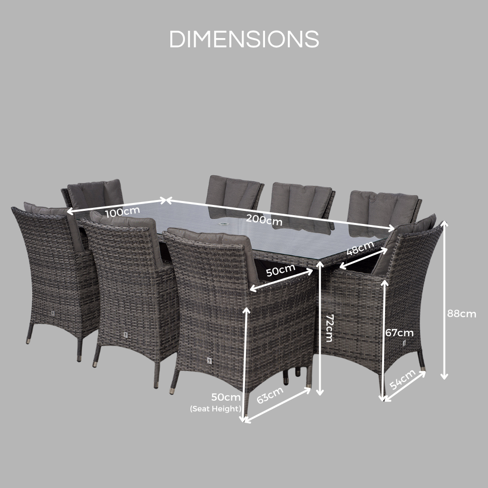 Enjoy warm summer days and evenings in style with the Savannah rectangle 8 seat rattan dining set by Giardino.