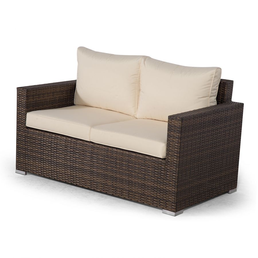 Relax and dine in style with the Sydney 6 seater drinks cooler conversation dining set. Consisting of a two seater sofa, 2 armchairs, a 150 x 100cm drinks cooler dining table, drinks cooler coffee table and 2 stools, the Sydney collection features high backrests, luxuriously plump multi-density cushions and is available in a beautifully contrasting mixed brown weave.