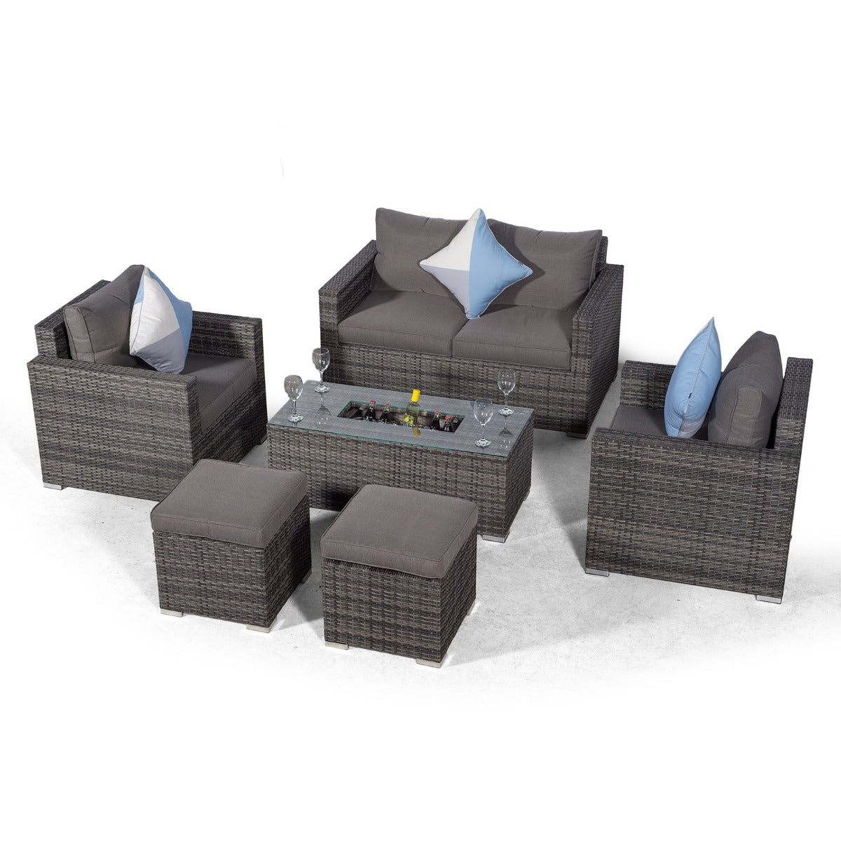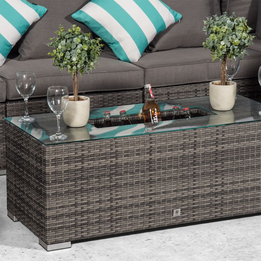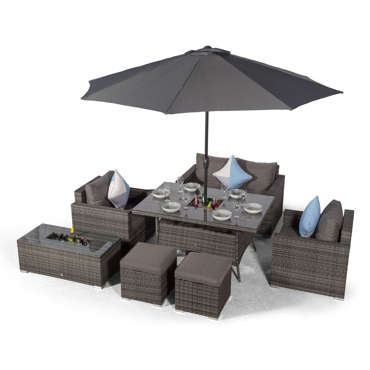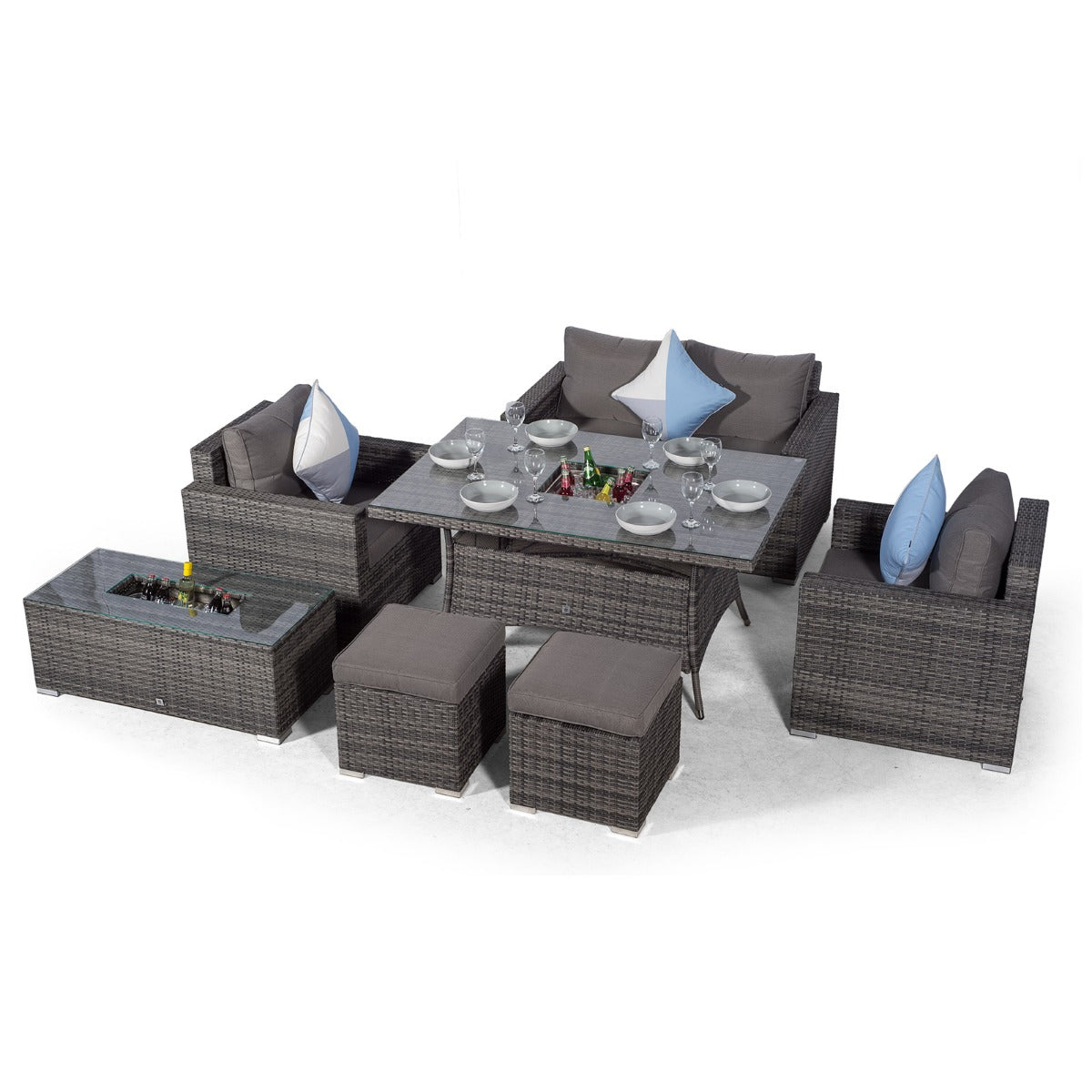 Sydney 6 Seater Drinks Cooler Conversation Dining Set With Coffee Table & 2 Stools - Grey