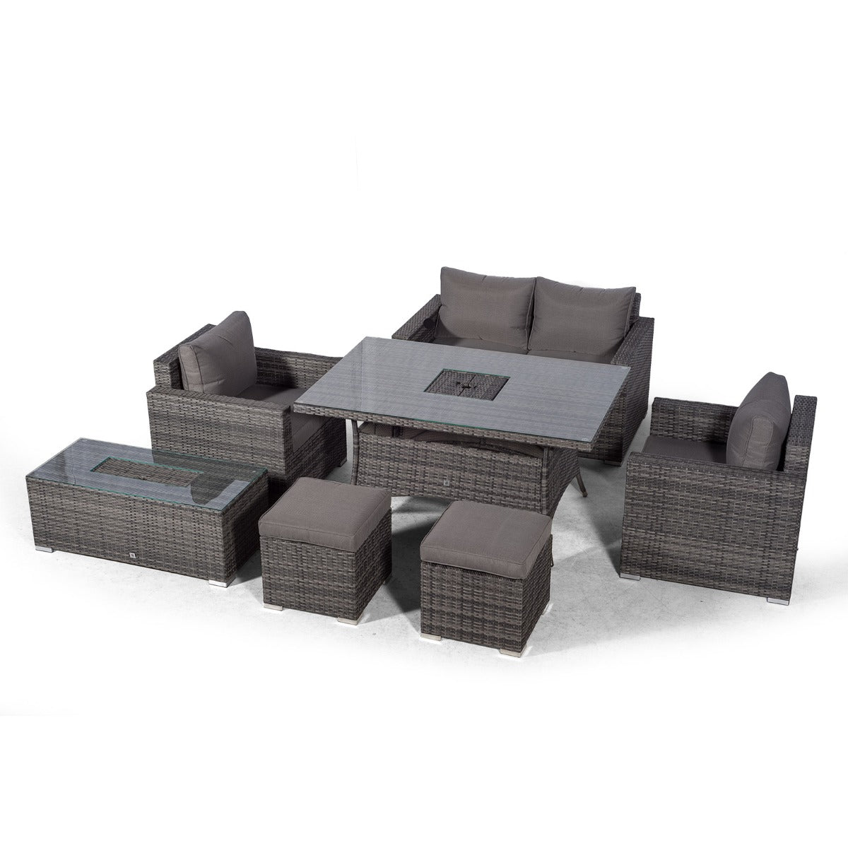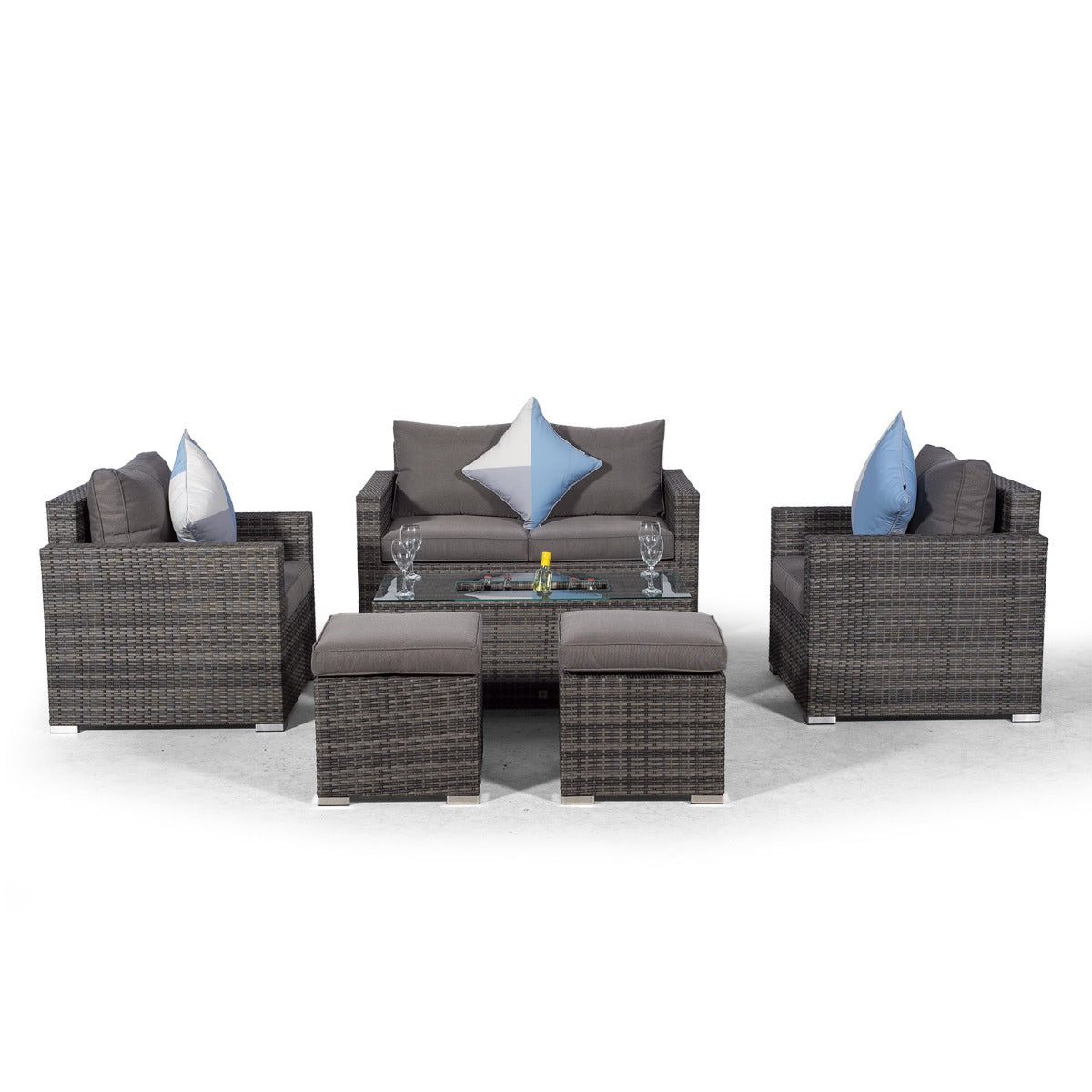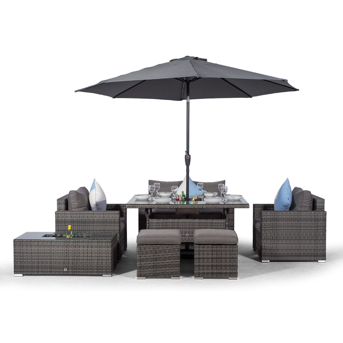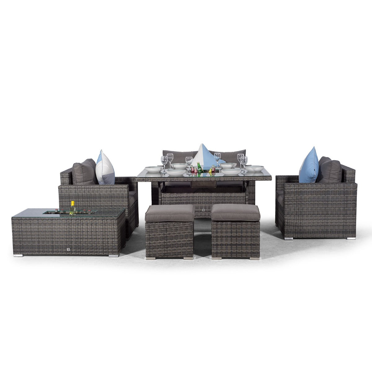 Sydney 6 Seater Drinks Cooler Conversation Dining Set With Coffee Table & 2 Stools - Grey