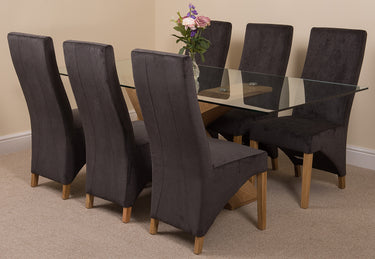 Valencia Oak Large Glass Dining Table & 6 Lola Black Fabric Chairs