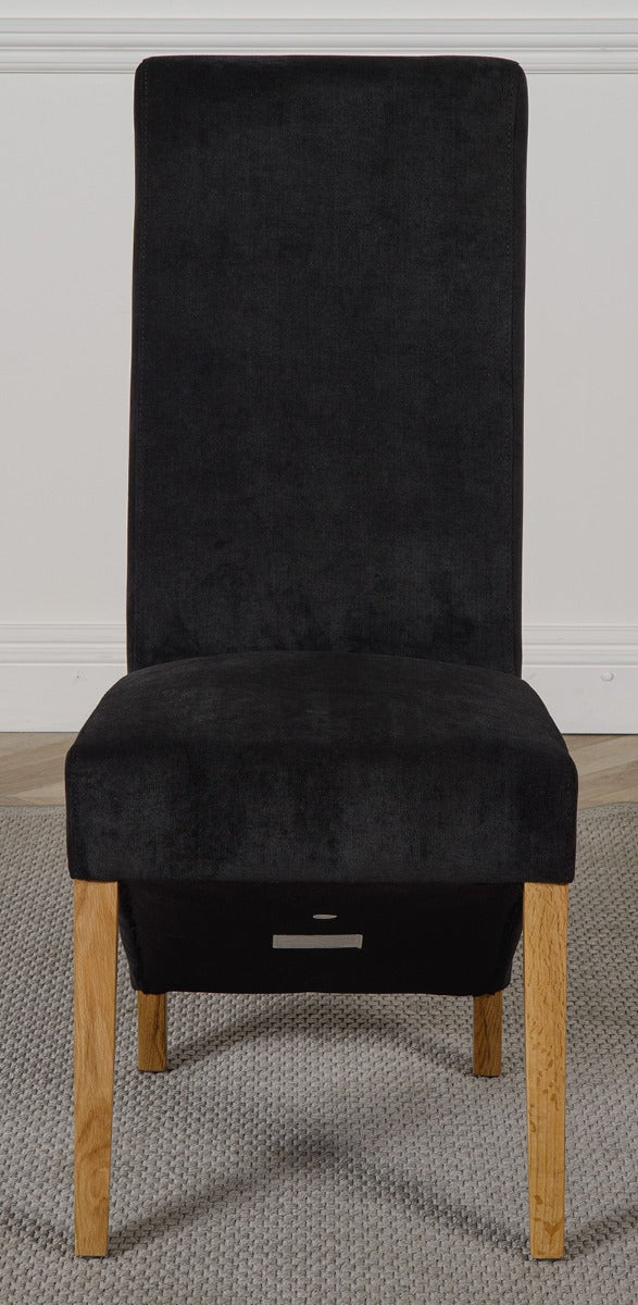 This dinner table and chairs set comes with 8 Lola fabric dining chairs upholstered in dark grey fabric with solid oak legs, hardwood frame and a sprung seat for exceptional comfort and durability.